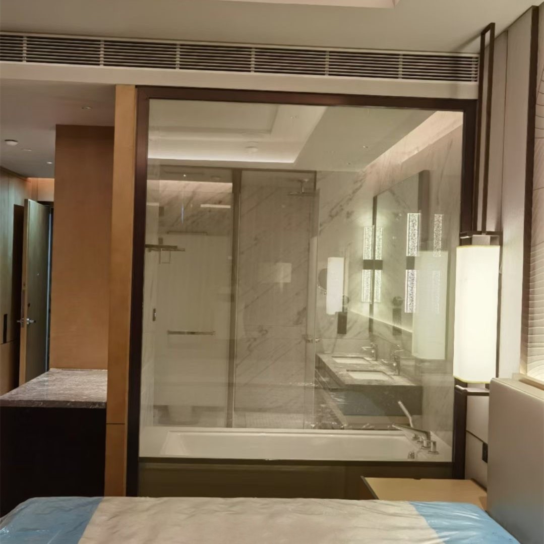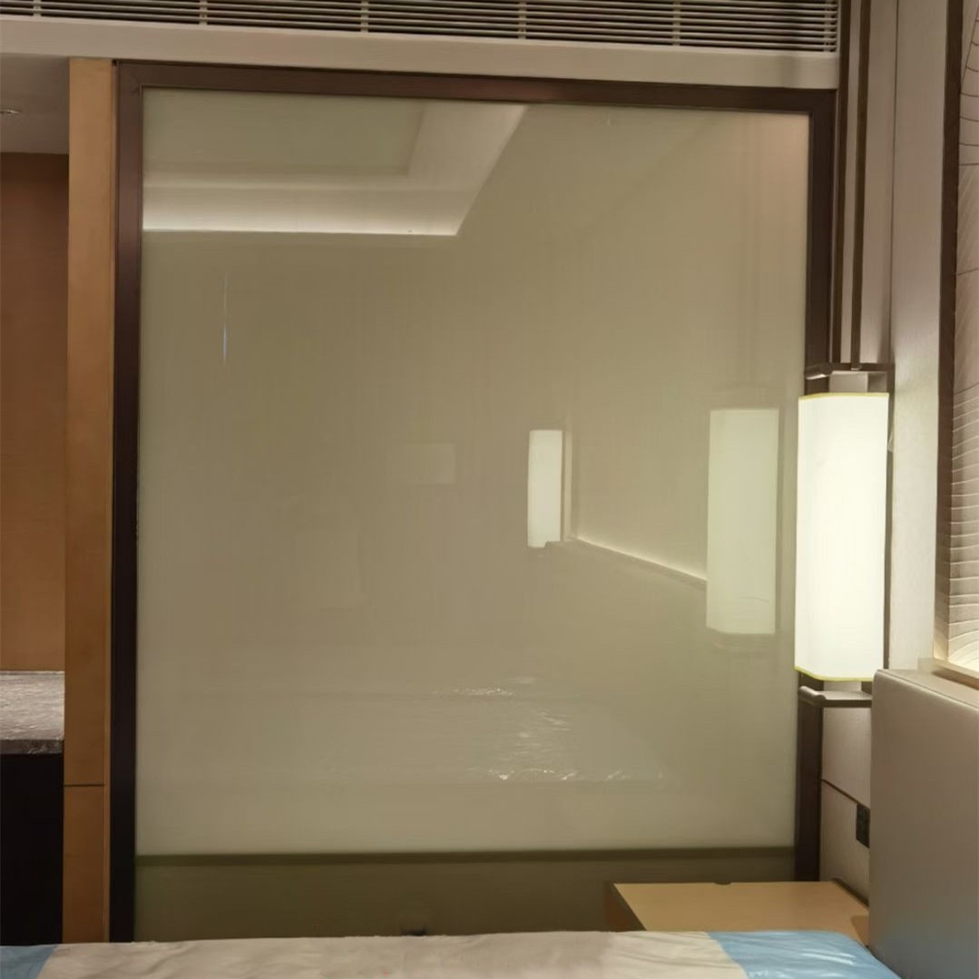 Switchable PDLC smart glass is an innovative glazing solution that provides instant privacy and light control with just a simple electrical switch. When powered on, the glass appears clear; when powered off, it becomes frosted to ensure privacy while still allowing natural light to pass through.