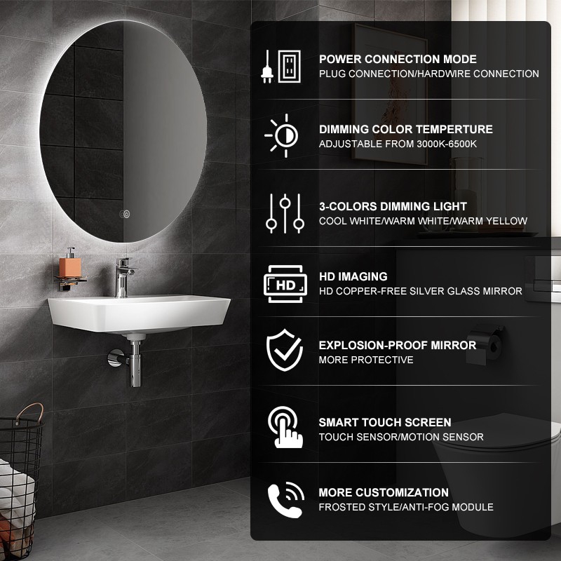 Bathroom Backlit LED Mirror with Touch Switch and defogger