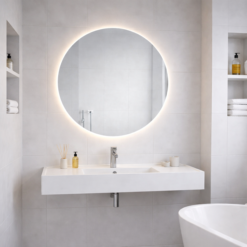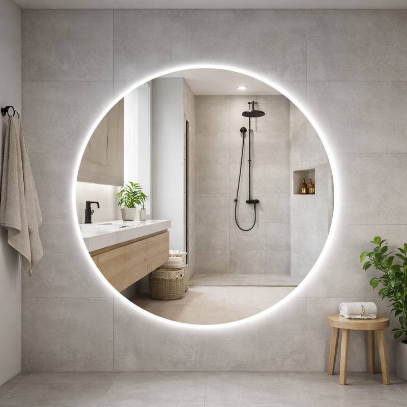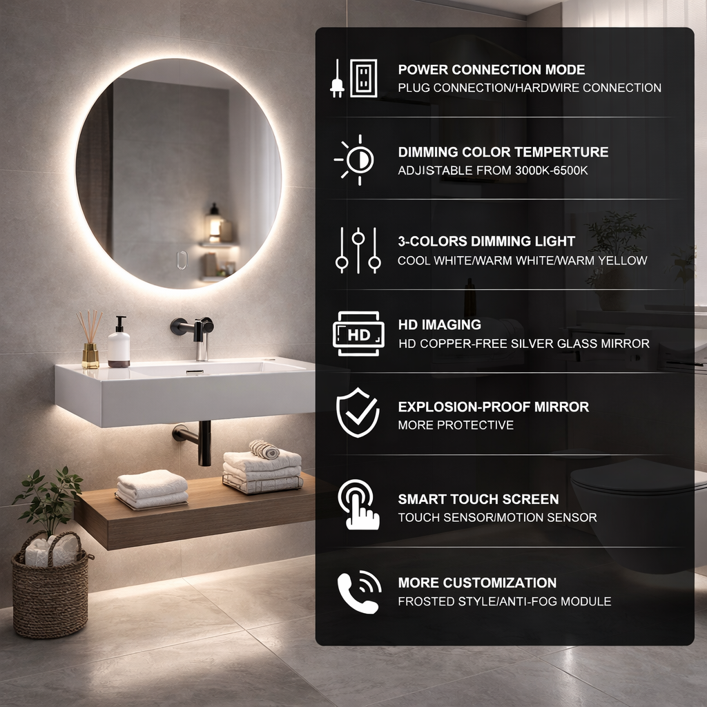 Round Smart Bathroom mirror with backlight and defogger - product display.jpg