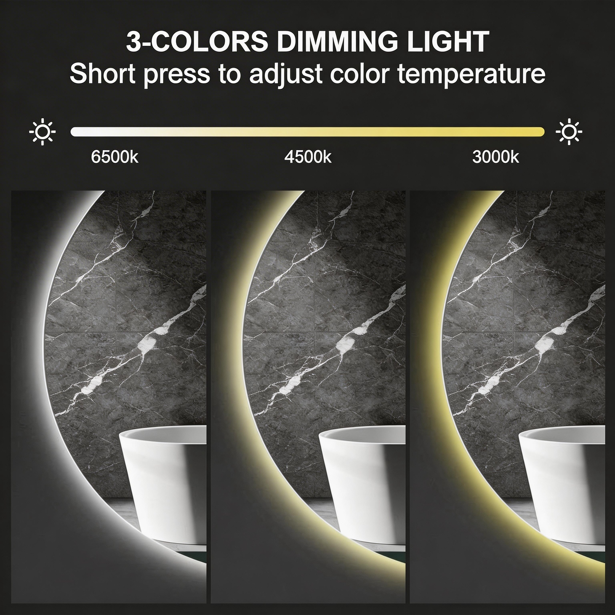 Round Smart Bathroom mirror with backlight and defogger - LED light dimmable.jpg