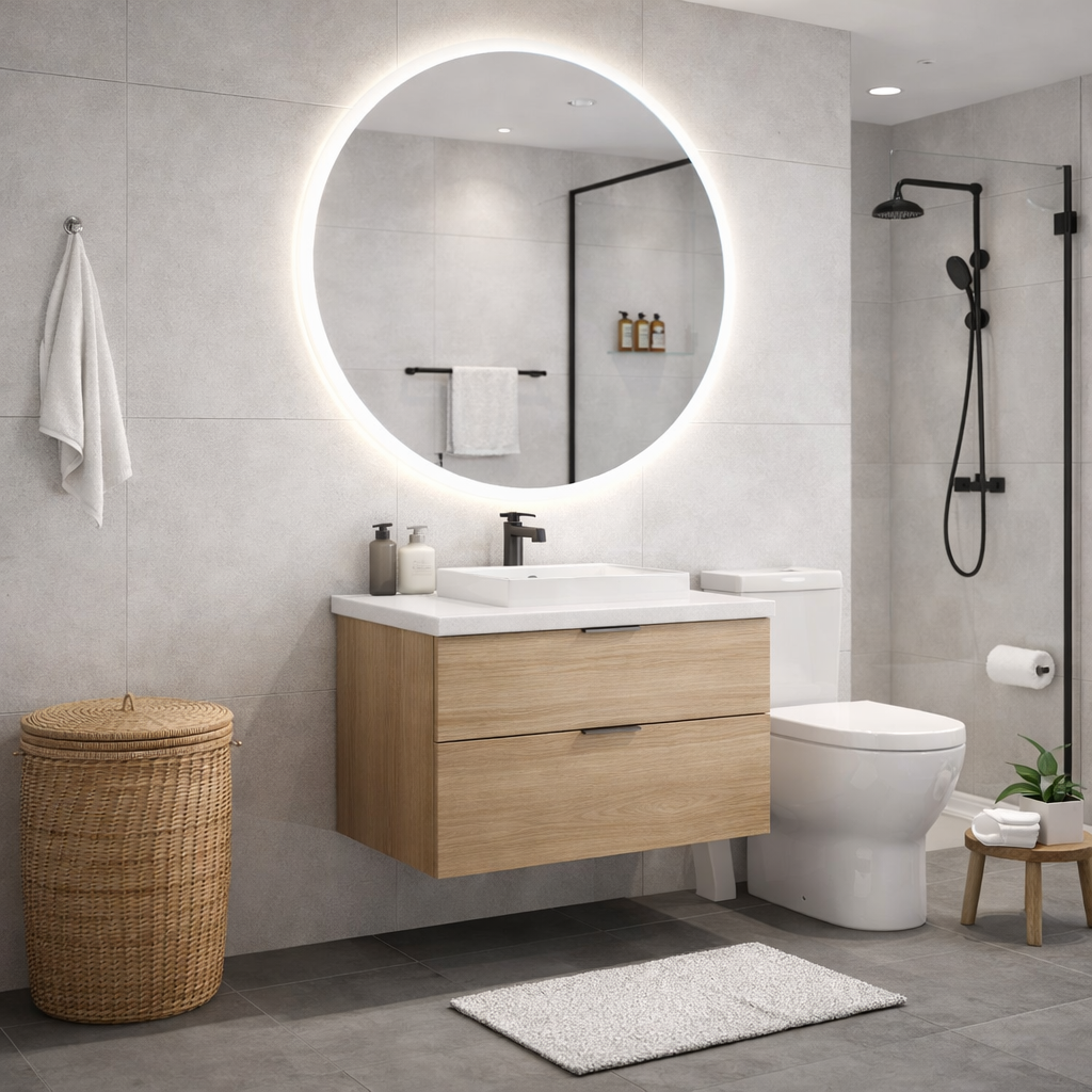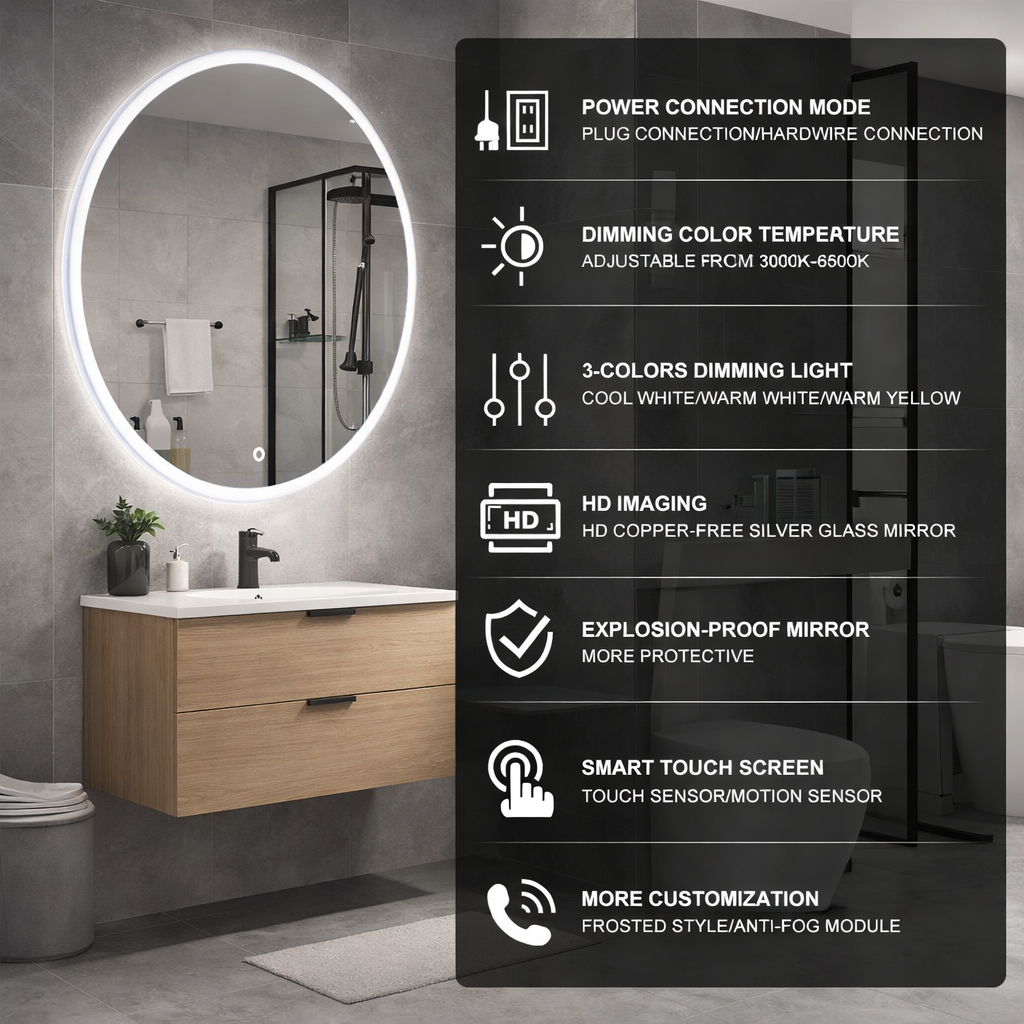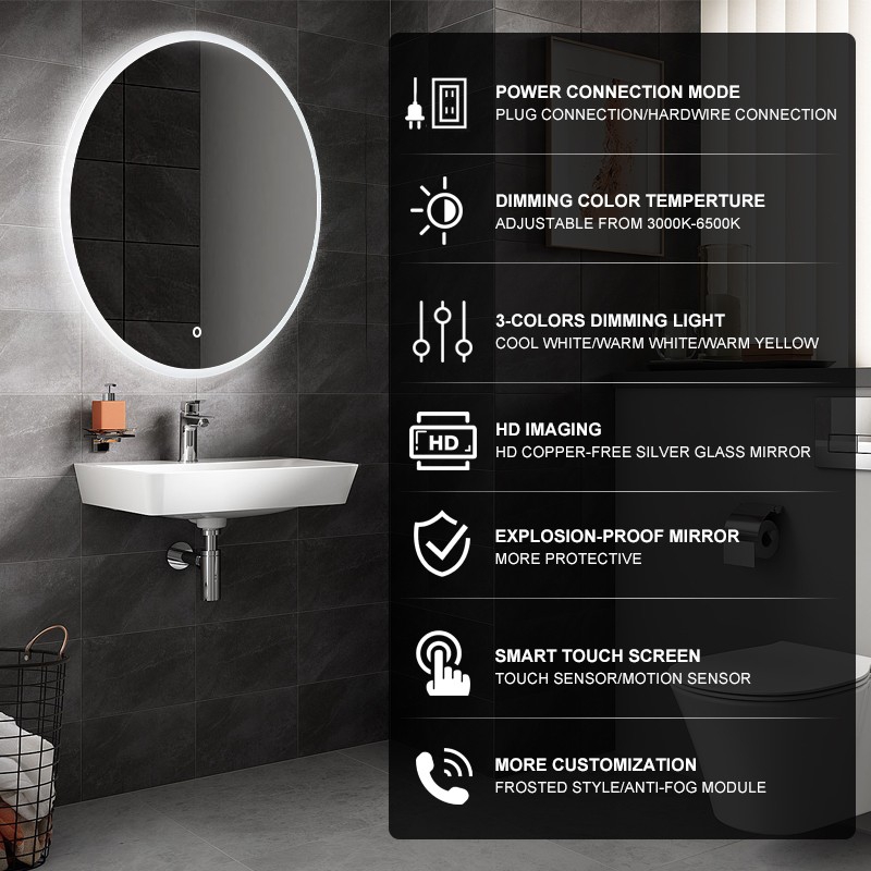 Round Smart Bathroom mirror with backlight and defogger - product display.jpg