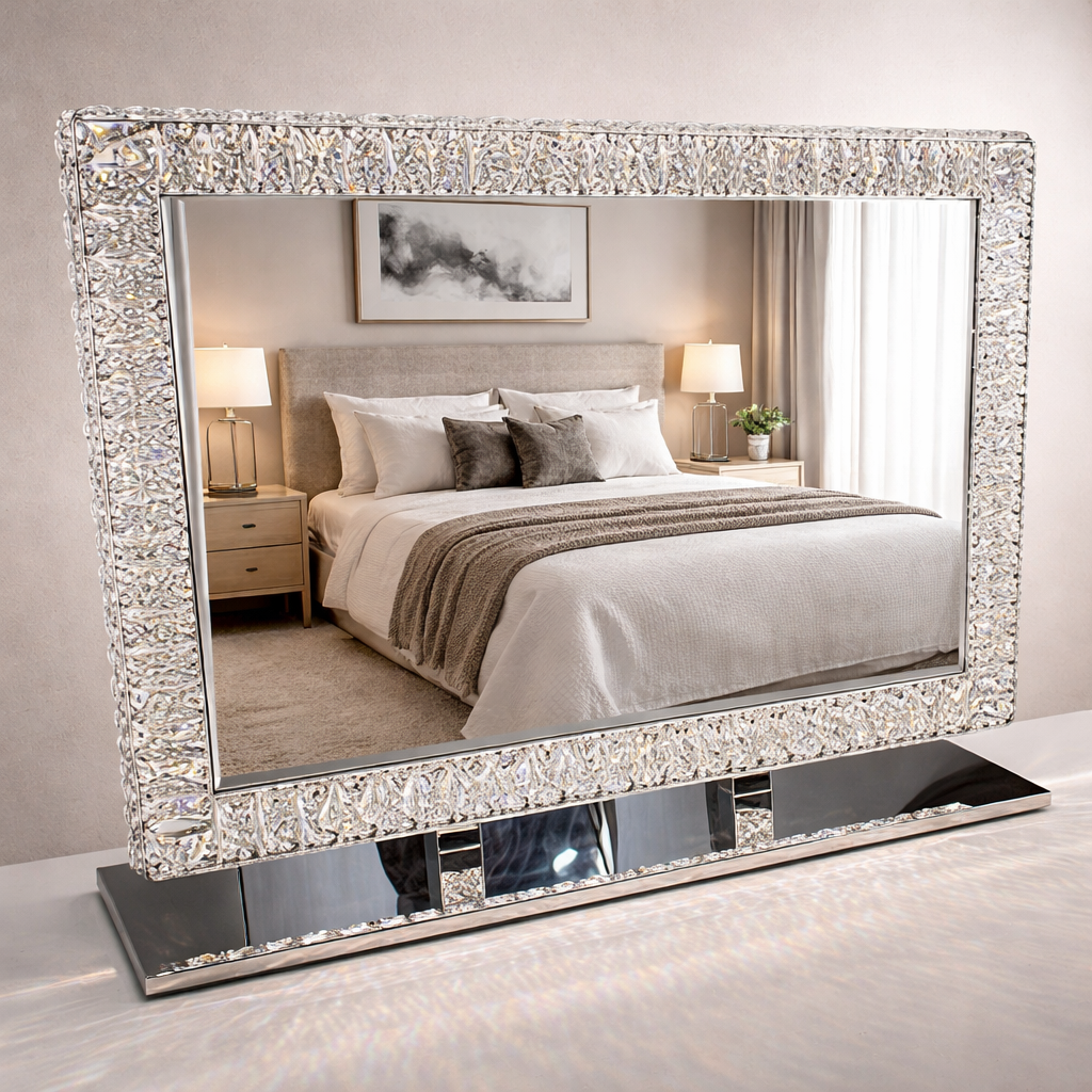 The LED luxury crystal diamond vanity mirror will have a different sensory impact from every angle of the interior space. Every day, it seems to be in a luxurious and dazzling art space, immersed in the perfect reflection of the amazing diamond craft frame. This mirror not only meets daily functional needs; it is also a decorative artwork that can enhance the beauty of any space and highlight personality and aesthetics.