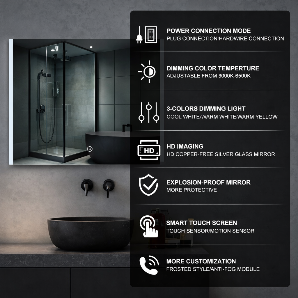 • 【ENERGY SAVING】One of the best ways to add luxury to your bathroom is by adding a LED bathroom mirror.