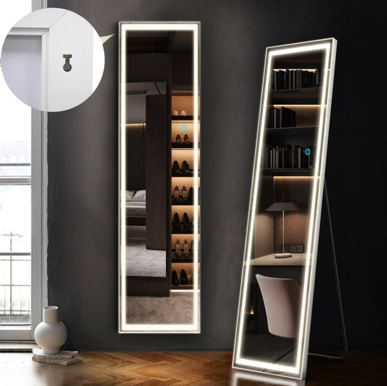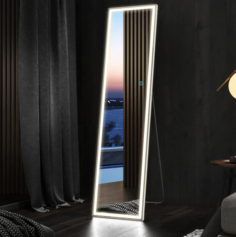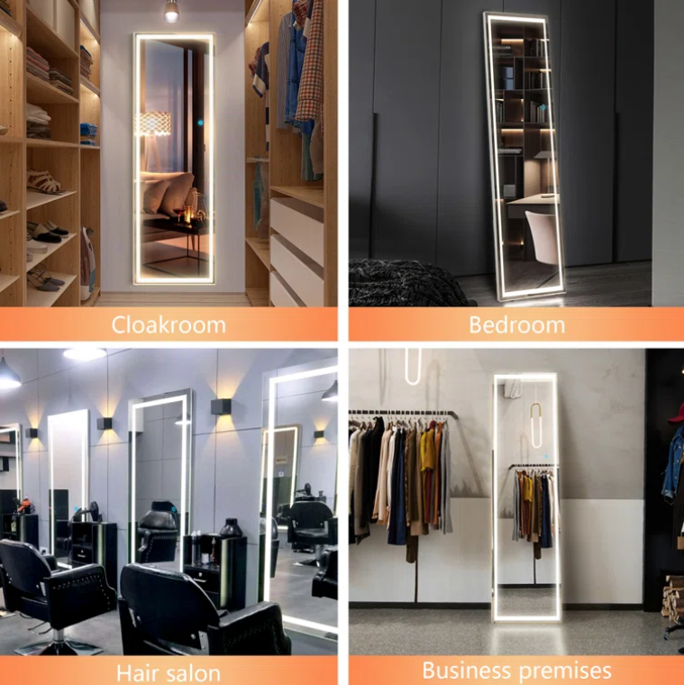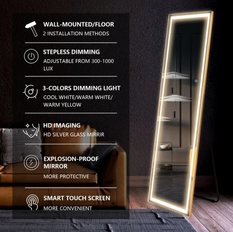 This lighted full-body mirror provides bright daylight illumination for your cosmetic, hygiene, and dressing needs.You can use it in different environments such as cloakroom, bedroom, hair salon.