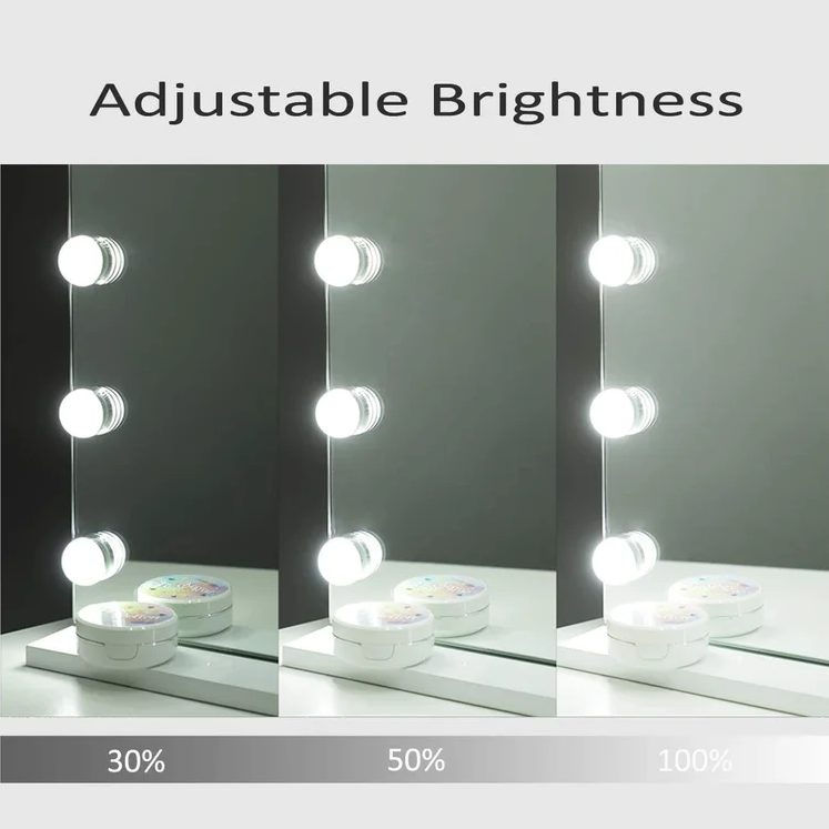 Upgraded adjustable brightness & 3 colors lights- this vanity mirror with cool white, warm white, and warm light three-tone settings. The light is long-lasting, natural, and soft, protecting your eyes.
