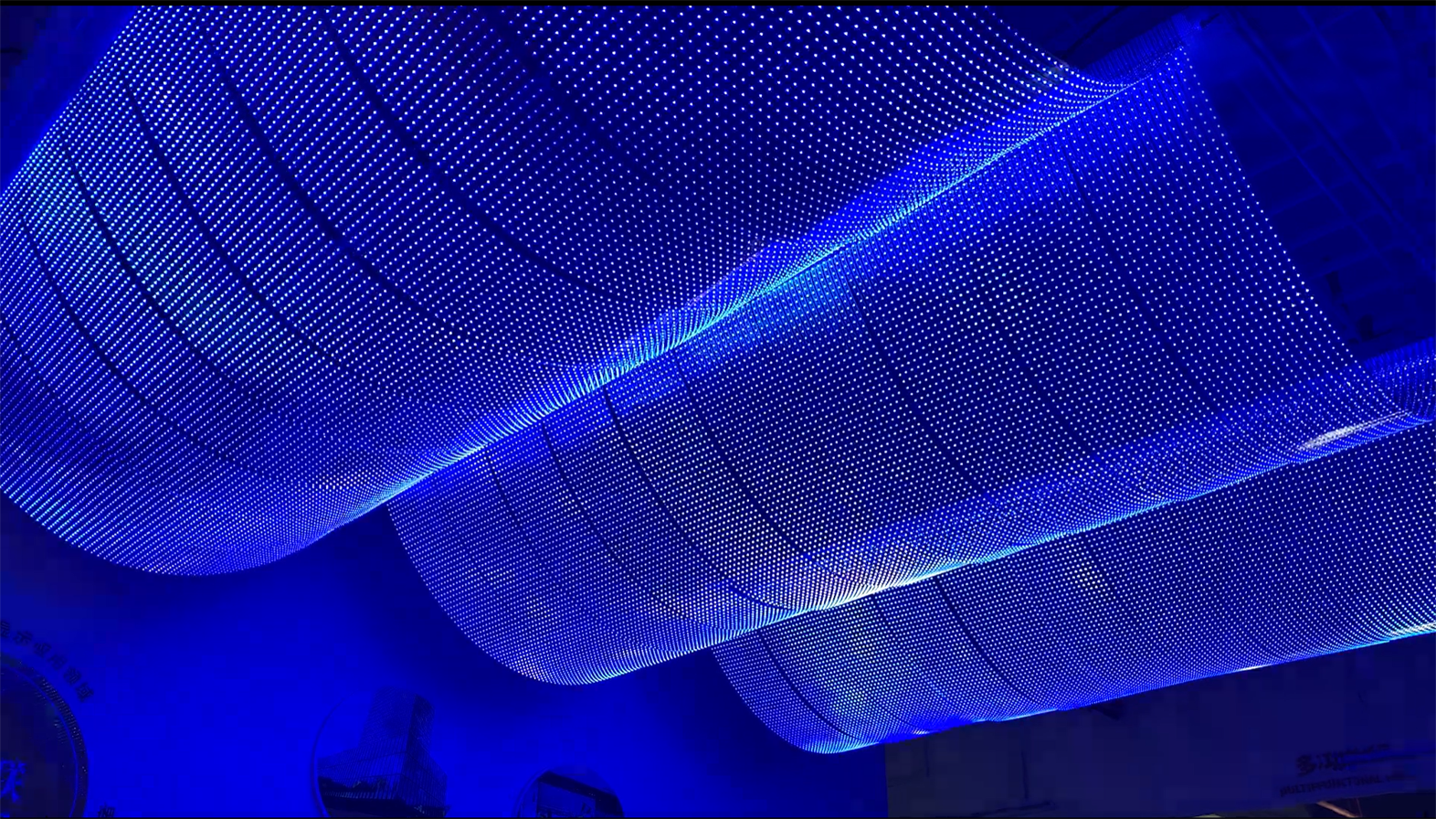 Dot, line, or mesh-type curtain walls provide only basic lighting patterns and lack the capability to display dynamic video content.