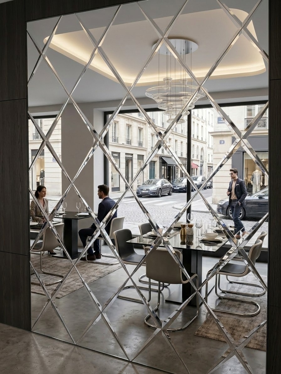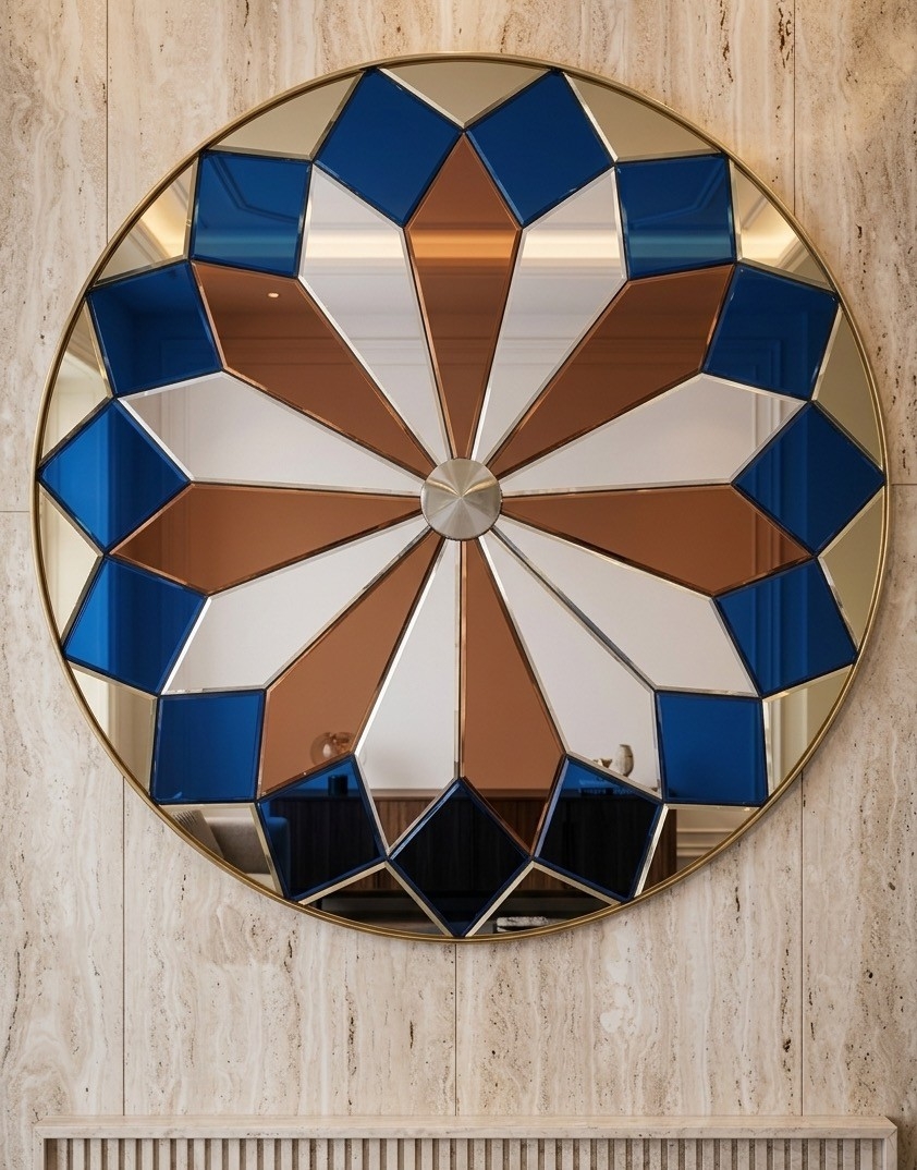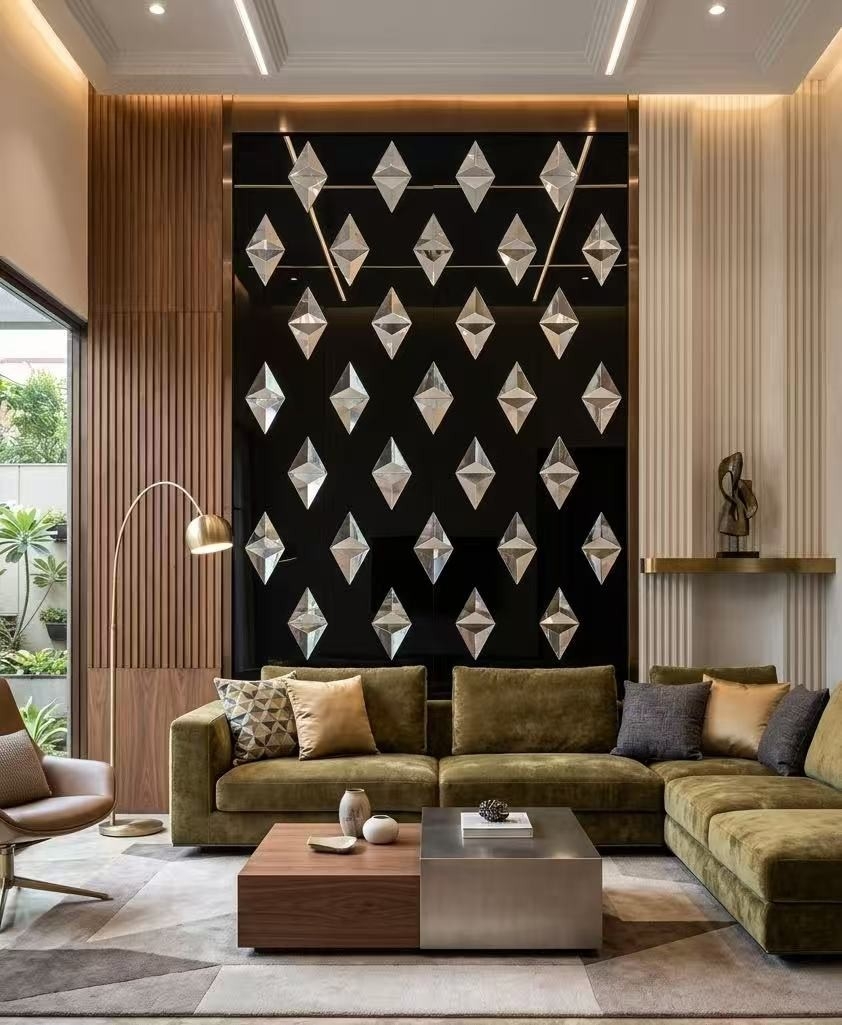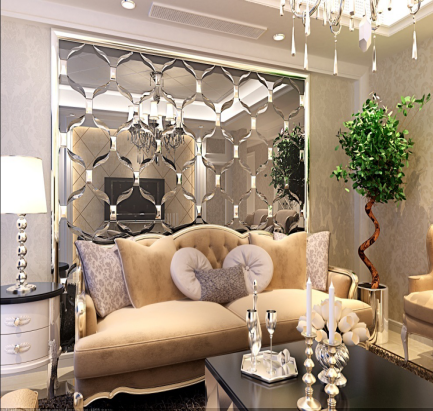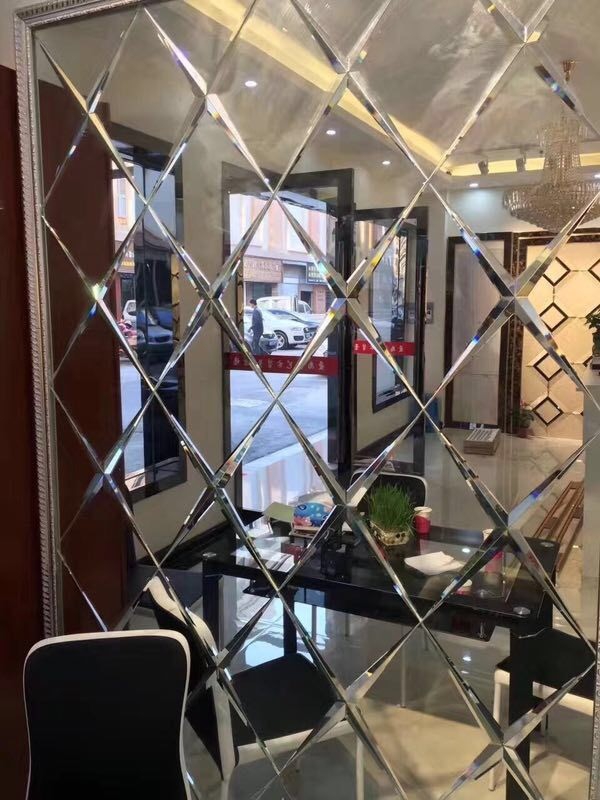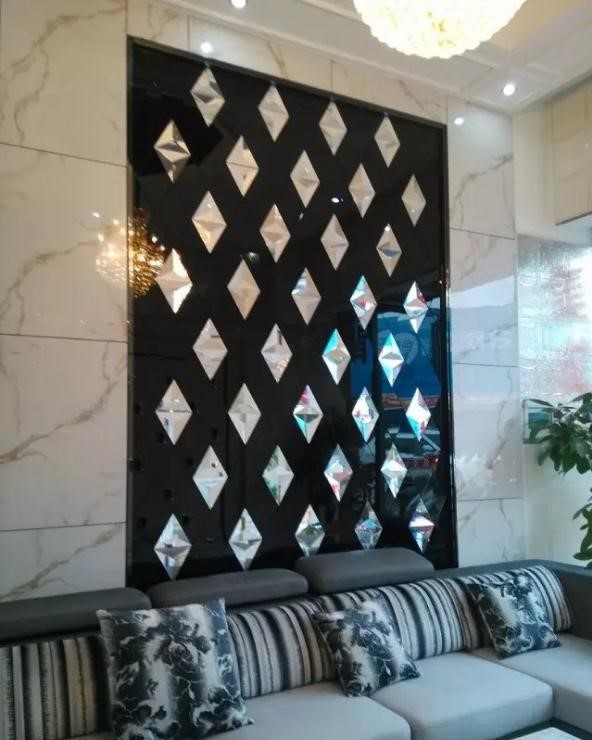 Our beveled mirror wall panels are crafted by joining multiple precision-cut beveled mirrors into elegant geometric designs. When installed on walls, they create a striking decorative surface that reflects light and adds both brightness and depth to interiors. Each piece is polished, durable, and designed for seamless wall mounting, making it an ideal solution for luxury residential and commercial spaces. Size and shape can be customized.