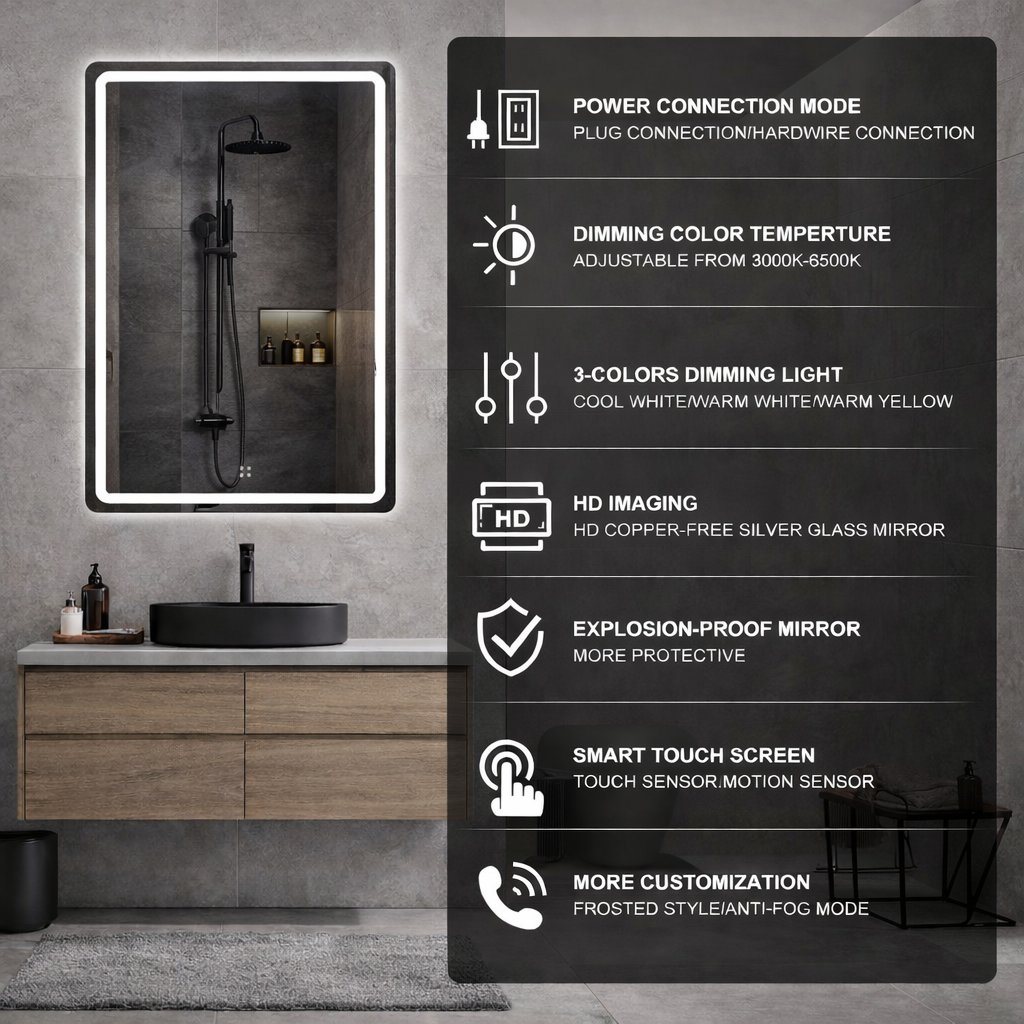 Advanced defogging technology keeps the mirror surface clear, even after hot showers. Enjoy a consistently fog-free LED bathroom mirror without waiting.
