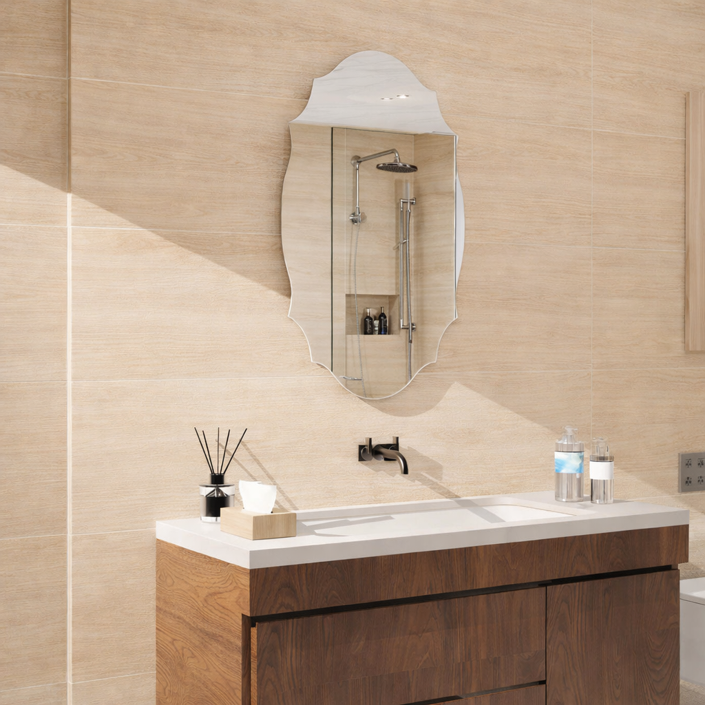Drawing from Rococo and European vintage aesthetics, the mirror’s scalloped design delivers a classic yet fresh charm, fitting for homes that value heritage-inspired luxury.